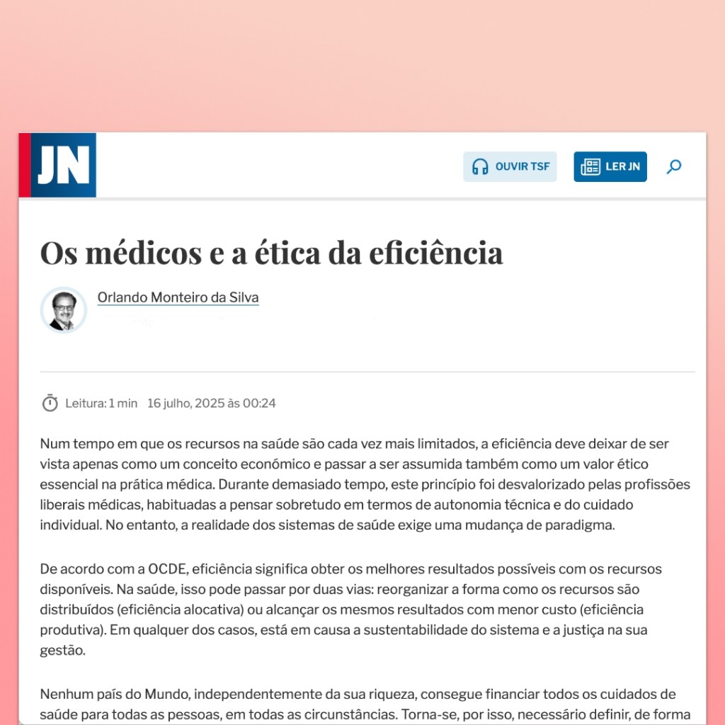 A ética do cuidado e a ética da eficiência não são opostas. São, na verdade, complementares. Ambas colocam o doente no centro, mas com a consciência de que cuidar bem de um é, também, não esquecer todos os outros.