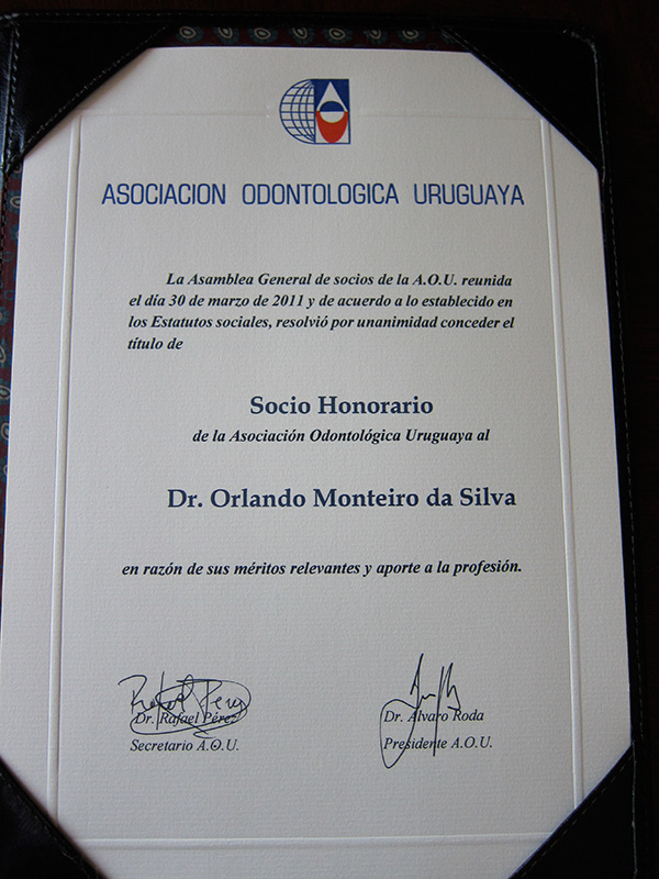 And also honorable member of the Uruguayan Dental Association (socio honorario de la Asociación Odontológica Uruguaya), on their General Assembly of the 30th March, by unanimous decision. Great Honour for me and FDI!
