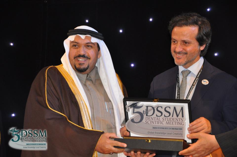 Receiving, on behalf of the FDI, an recognition award under the auspices of honor if his Royal Highnness, Prince Dr. Faisal Bin Meshal Al Saud, also vice Governor of Qassim Province.