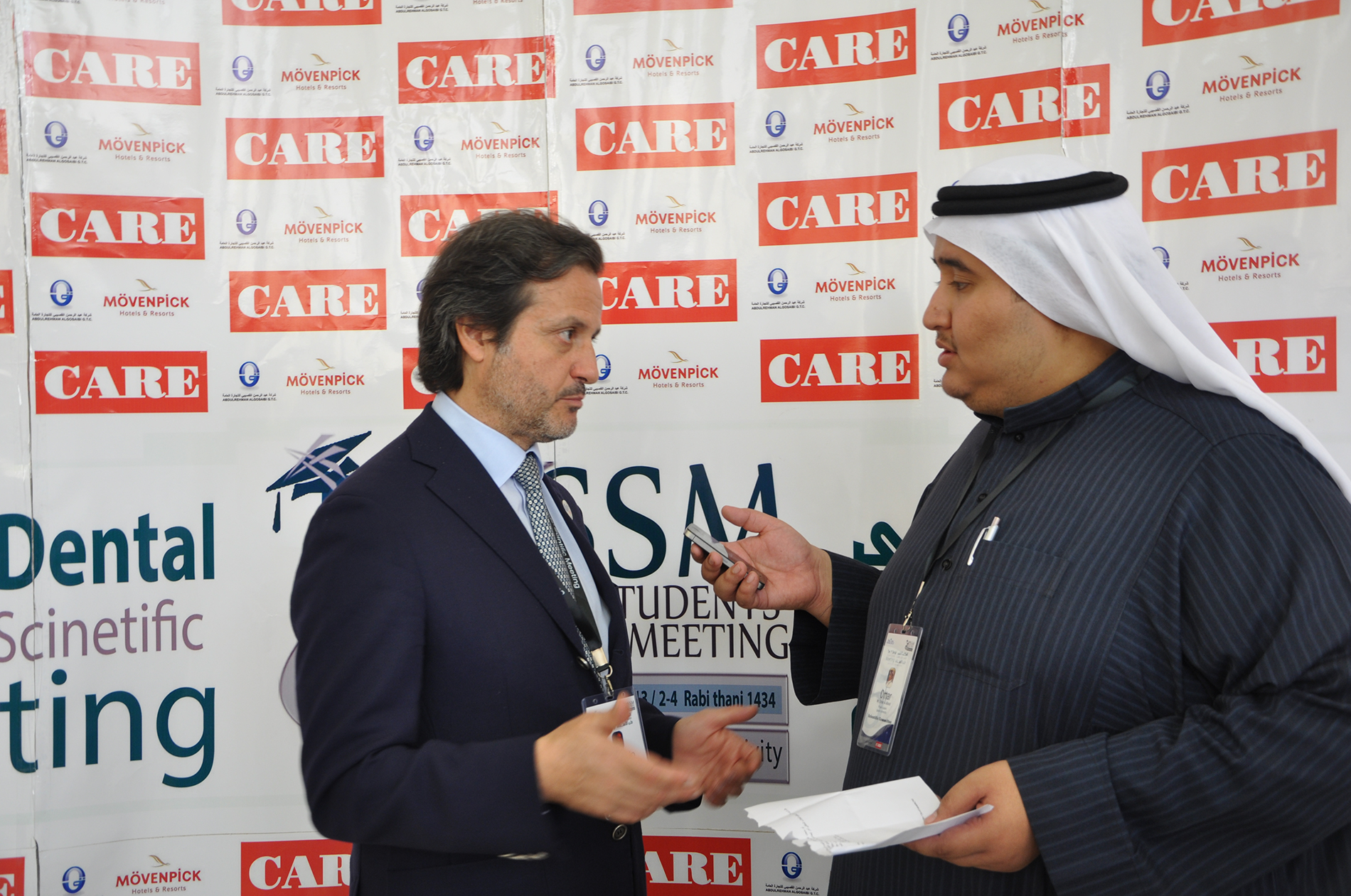 Omar Al Abood, a saudi dental student, translating an interview for a nation tv channel.