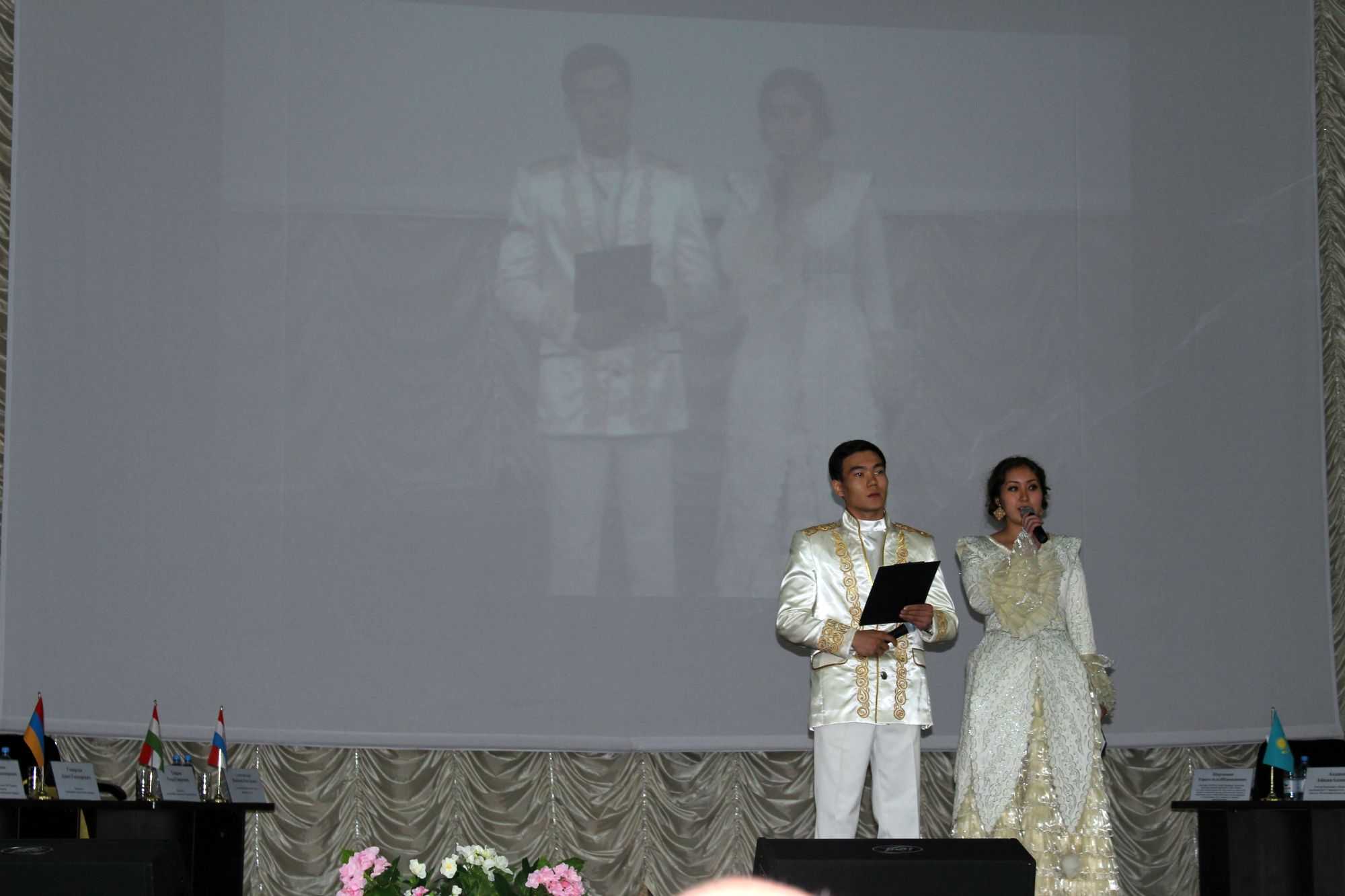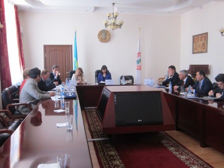 Welcome ceremony. From left to right, Sharmanov TS (one of the organizers of the historical Alma Ata Conference), Akanov Aykanom Akanovich (rector of the Kazakh National Medical University, KazNMU), myself, Michèle Aerden (FDI past president), Saule Esembaeva (president of Kazakhstan Dental Association) and Oles Shevchenko (Russian Dental Association).