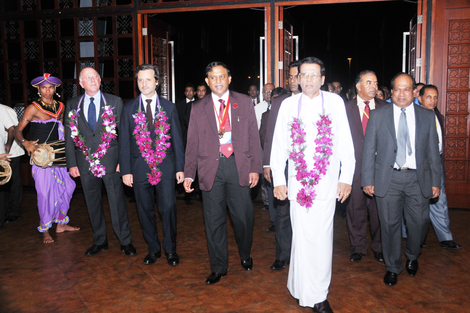 Arrival of the Sri Lanka minister of Health, Maithripala Sirisena, at the ceremonial inauguration at the Nelum Pokuna Mahinda Rajapakse Theatre. Maithiripala Sirisena, as chief guest, said: “ …Sri Lanka is a nation that can boast nearly a century of public dental service offered free of charge to its citizens. It’s the only country in the South East Asia region in which nearly 65% of the country’s dental surgeons are employed by the State…”