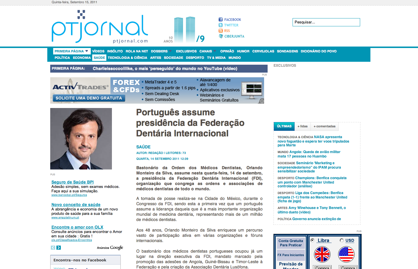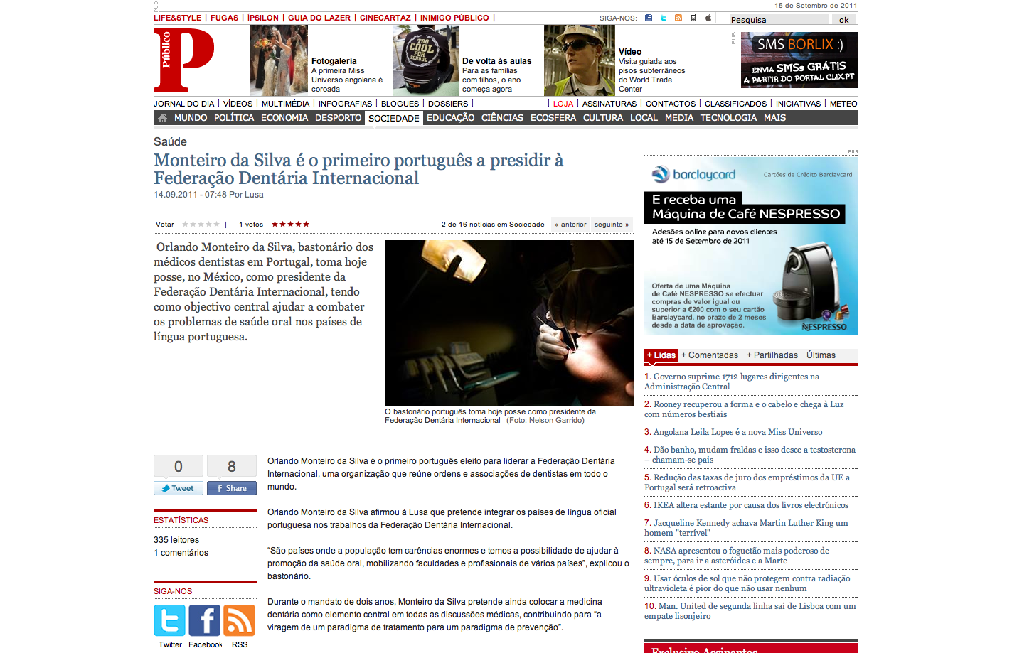 Repository of articles in the Portuguese media about my re-election as president of the Portuguese Dental Association: